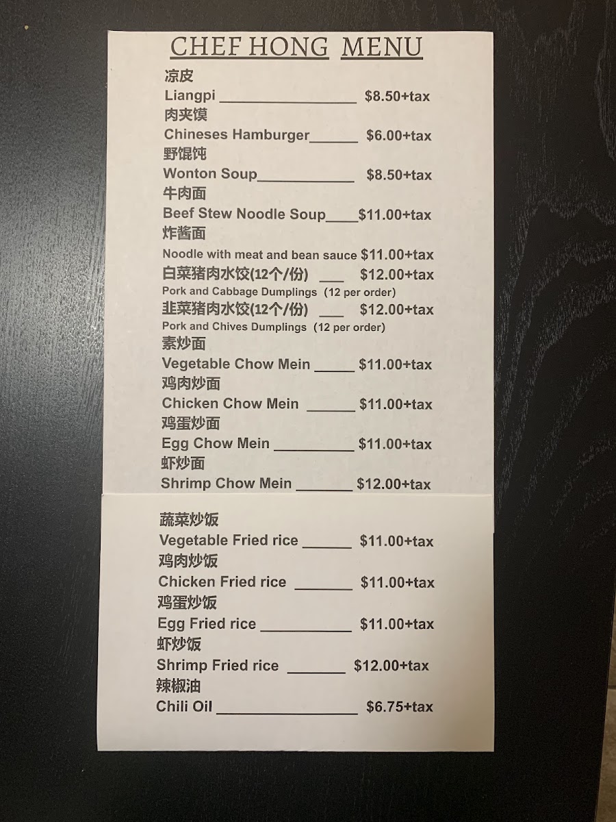 The menu at Chef Hong offers a straightforward and comforting selection of Chinese takeaway dishes, perfect for casual meals on the go. You’ll find a variety of hand-crafted noodles, savory soups, and traditional snacks that emphasize fresh ingredients and balanced flavors.